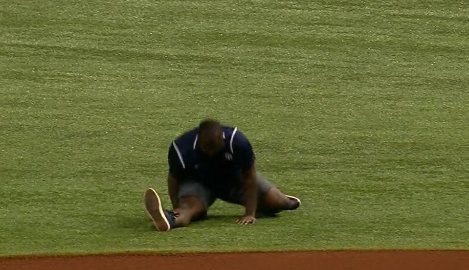 So shout out to this Rays groundskeeper who uses that pent up energy to put on an absolute show in between innings for all the old people spending their Wednesday night at the ball park.