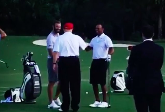 Tiger Woods and Dustin Johnson are spending their Black Friday by mixing in (a quick) 18 with The Don down in Jupiter today in between important international calls with Turkey.