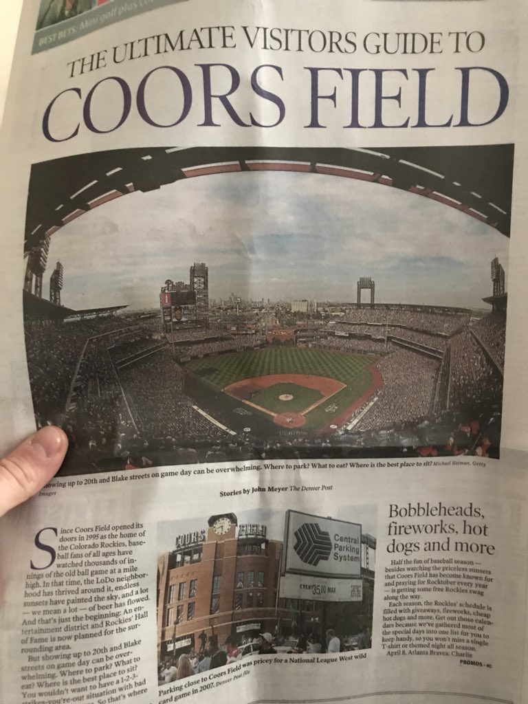 It can’t get much worse than having a massive headline in all-caps reading “THE ULTIMATE GUIDE TO COORS FIELD” followed by a giant picture of Citizen’s Bank Park in Philly. People wonder why newspapers are dying.