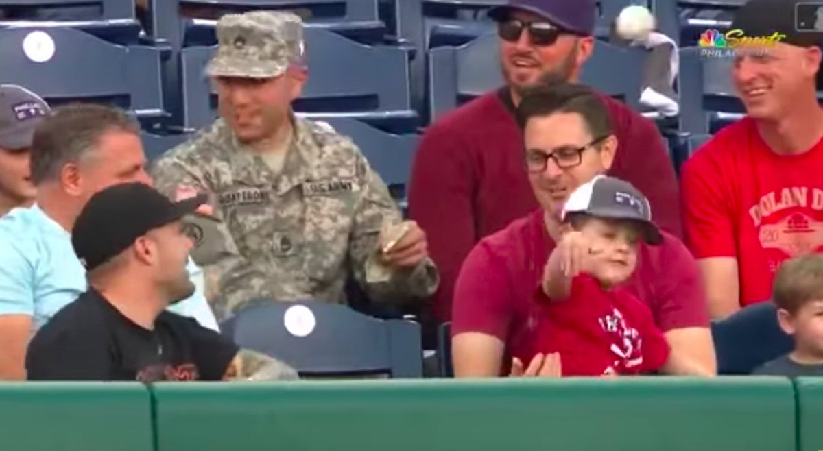 So when nice guy Giants fan gives up the foul ball he caught to this kid, he promptly tossed it right back onto the field where it came from. Even at that young of an age, he probably realized that there was a good chance that this Giants fan only gave up that ball to avoid the wrath of all the Philly fans surrounding him in the stands.