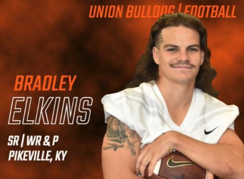 Bradley Elkins from Union College in Barbourville, Kentucky has breakout star of 2018 written all over that beautiful mullet that he’s sporting. It helps that Bradley is also a punter, wide receiver, punt returner, kickoff returner, former defensive player and now has a record 78-yard punt for Union.