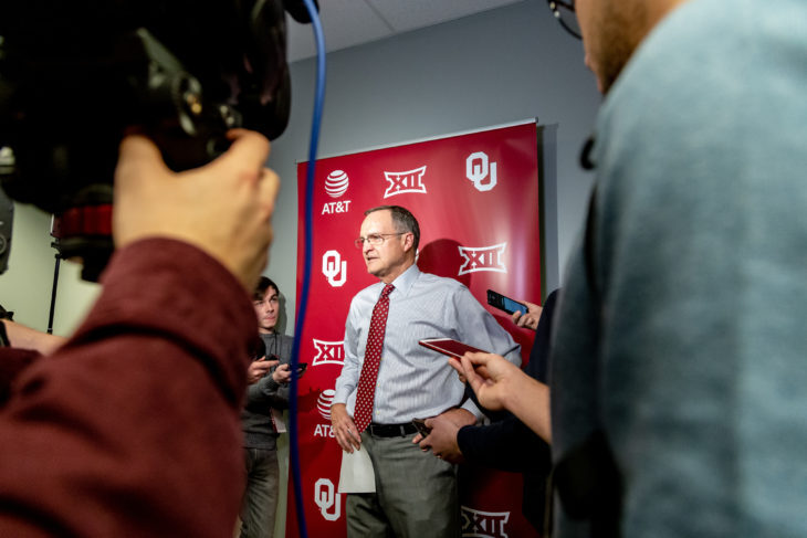 NCAA Basketballl USC vs Oklahoma Sooners, Tulsa, USA - 15 Dec 2018: OU head coach Lon Kruger speaks during postgame interview.